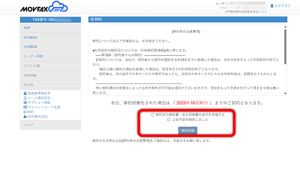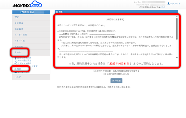 MOVFAXを解約してみた(WEBで完結!)