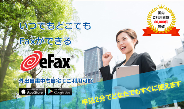 eFaxは国内利用者数が60,000件を突破した、1番人気のインターネットFAXです。