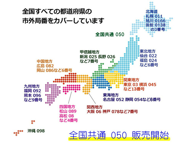 ※ 日本のすべての市外局番を網羅しているわけではありません